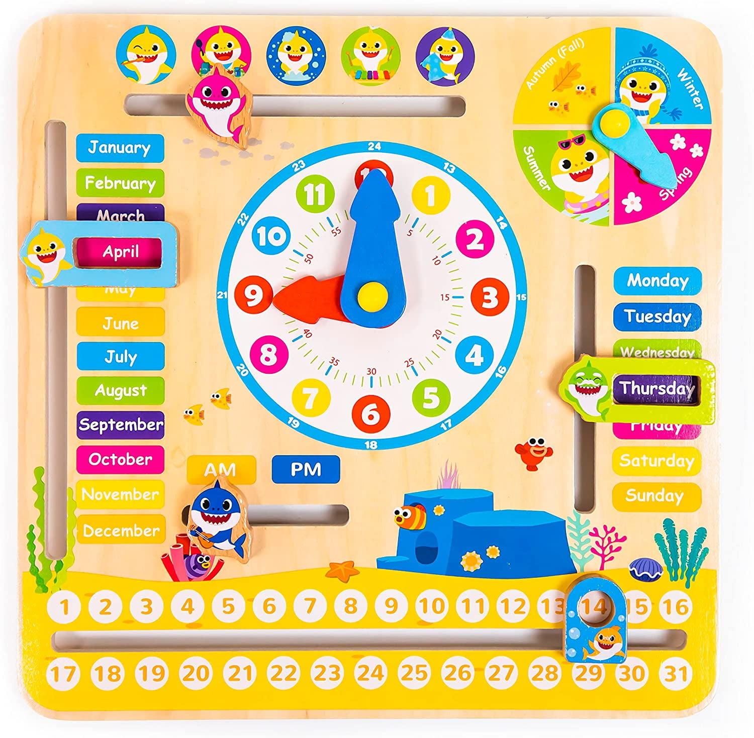 Pidoko Kids Baby Shark Wooden Clock Calendar All About Today Board Montessori Toys For Toddlers 3 Walmart Com